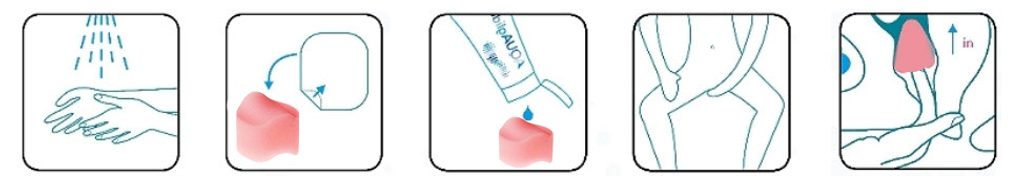 1. Pro snadnější zavedení doporučujeme nanést na tampon trochu lubrikačního gelu nebo jej navlhčit čistou vodou a potom pořádně vymačkat.