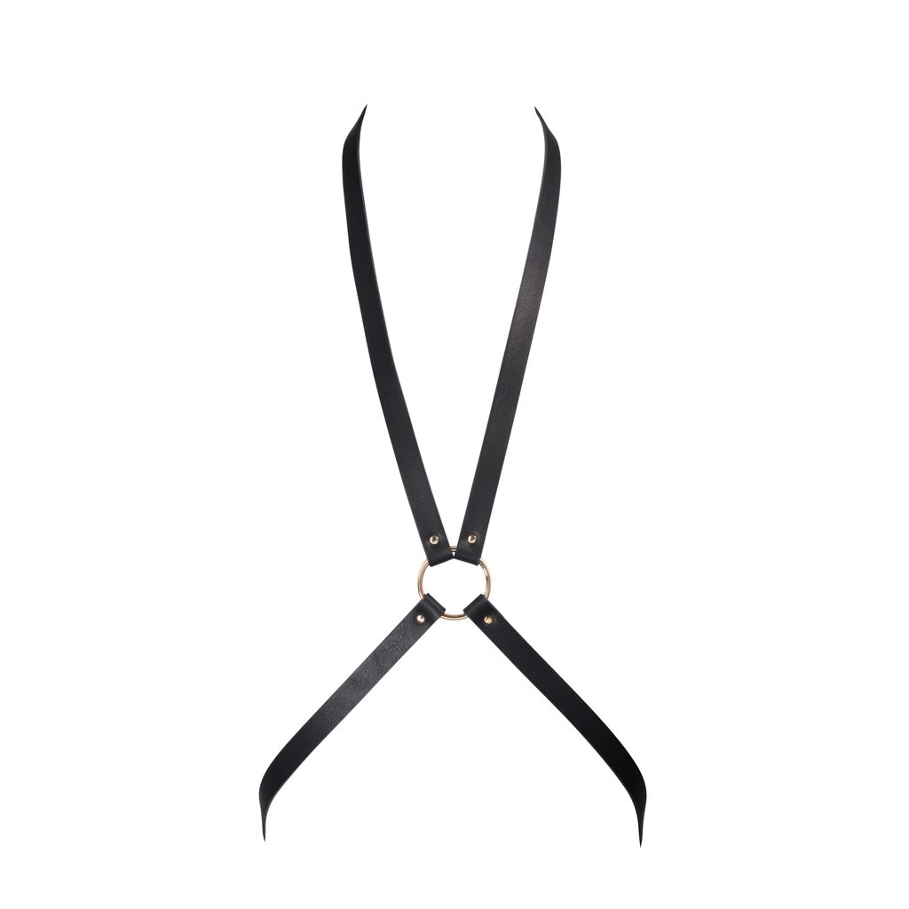 Uprząż Maze 8 czarna marki Bijoux Indiscrets. Uprząż w kształcie ósemki, otulająca ciało skórzanymi paskami. Można ją łączyć z bielizną, ale także z klasycznymi, imprezowymi stylizacjami.