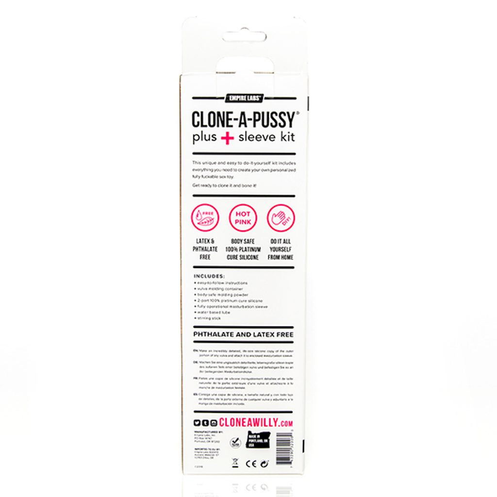 Zestaw Clone-A-Pussy+ Plus Sleeve pozwala każdemu odtworzyć ulubione usta pochwy za pomocą w 100% utwardzonego silikonu i materiałów bezpiecznych dla ciała. Po prostu złóż swoją replikę warg sromowych z dołączoną kaburą i rękawem przyjemności, aby stworzyć w pełni pieprzoną zabawkę erotyczną, a wszystko to w zaciszu własnego domu. Ten zestaw łączy w sobie rzemiosło i pozytywność ciała, aby stworzyć całkowicie wyjątkowy kieszonkowy kotek!