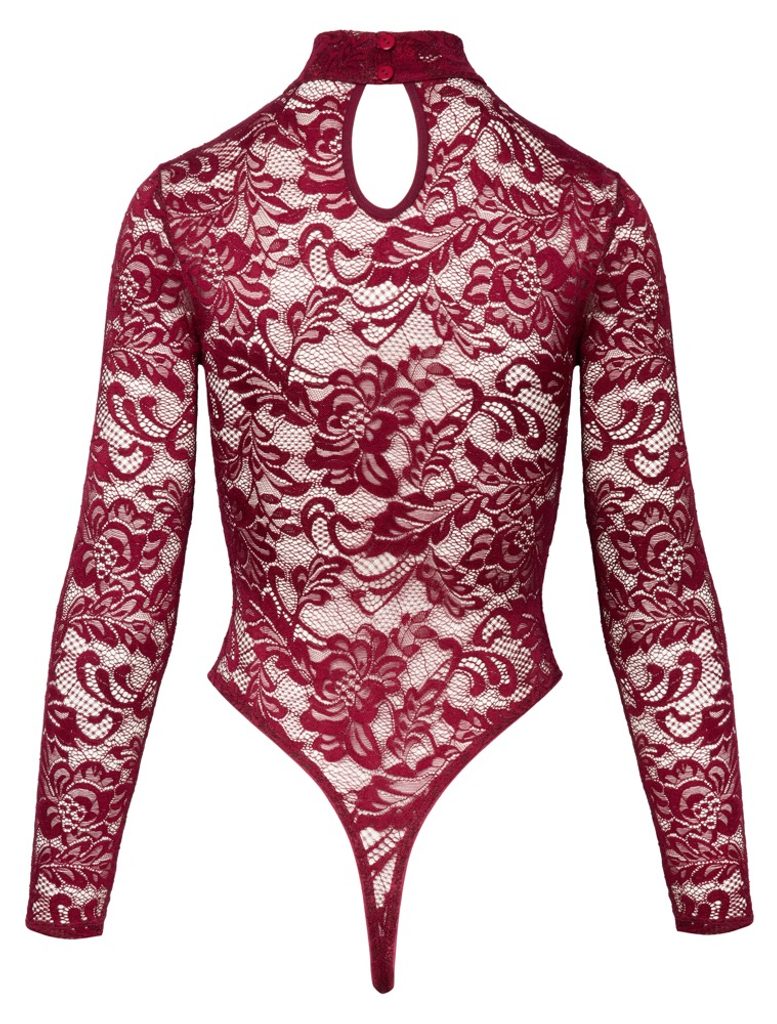 Cottelli - przezroczyste koronkowe body w kolorze bordowym