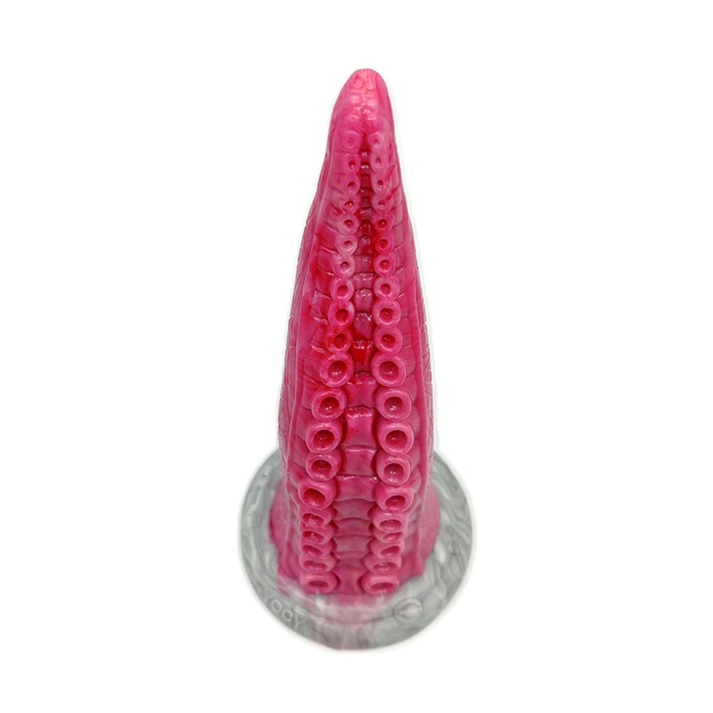 To dildo ma kształt macek z małymi przyssawkami na powierzchni.Zakrzywiony, stymulujący kształt o długości użytkowej 21 cm.Szerokość waha się od 1,5 do 6 cm.