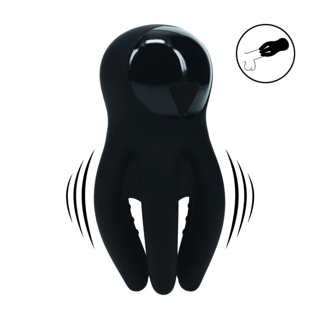 Levelz Digital Vibrating Silicone Penis Head Stimulator with Tentacles - Black