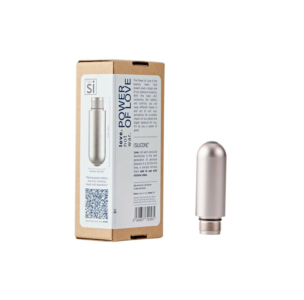 Baza baterii POWER OF LOVE to serce każdego produktu od LOVE NOT WAR. Wykonana z recyklowanego aluminium, łączy elegancki design z ekologiczną odpowiedzialnością. Dzięki ładowalnej baterii USB i prostemu sterowaniu możesz cieszyć się doskonałymi chwilami bez kompromisów.