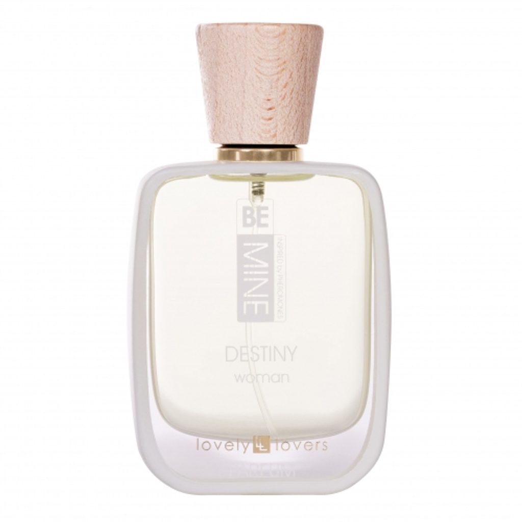 Perfumy damskie zwiększające atrakcyjność seksualną oparte na Formule I-L-Molekuły z 20% stężeniem substancji wabiących zapach, tzw. feromonami dla kobiet marki Lovely Lovers, to zapach z serii BeMine Destiny.
