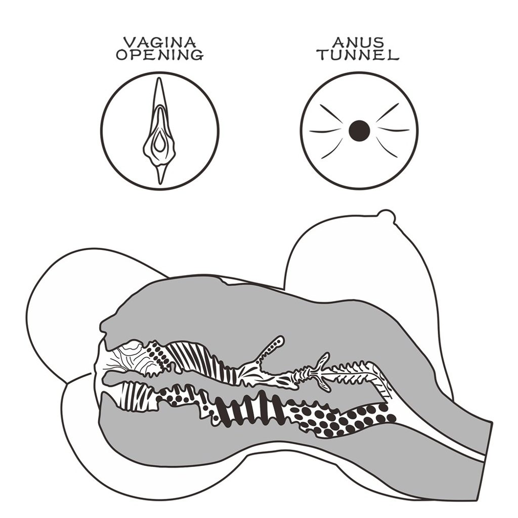 Dwa dopracowane kanały – waginalny z gęstą siecią wypustek i ciaśniejszy, zakrzywiony kanał analny