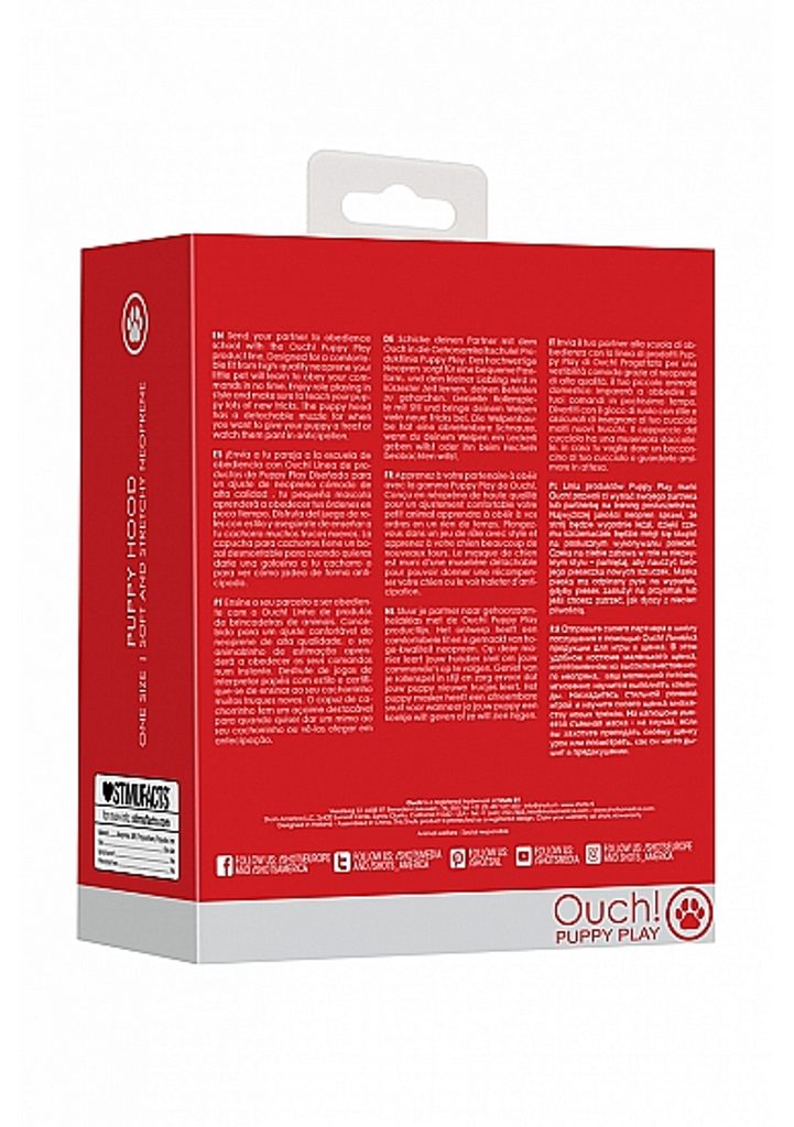 Wyślij swojego partnera do szkoły posłuszeństwa z Ouch! Zaprojektowany z myślą o wygodnym dopasowaniu i wykonany z wysokiej jakości neoprenu, Twój mały zwierzak nauczy się wykonywać Twoje polecenia w mgnieniu oka. Ciesz się stylowym odgrywaniem ról i nie zapomnij nauczyć swojego szczeniaka wielu nowych sztuczek. Maska szczeniaka ma zdejmowany pysk, gdy chcesz dać swojemu pupilowi ​​smakołyk lub patrzeć, jak dyszy w oczekiwaniu.