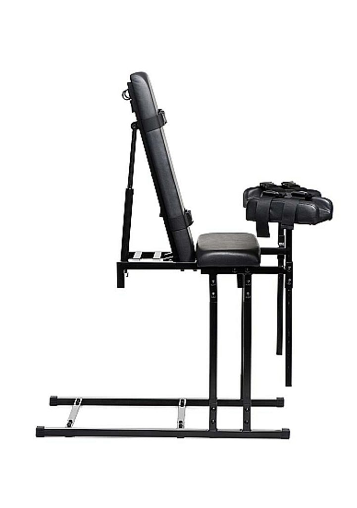 Poproś partnera, aby wspiął się na krzesło i spróbował. Dostosuj wysokość nóg i kąt oparcia krzesła, a także dostosuj inne pozycje i wysokości. Po zakończeniu konfiguracji zawiąż go paskami. Drażnij ją i torturuj z przyjemnością i bólem, gdy wiją się w agonii i ekstazie! Użyj zacisków na bicze, zacisków na sutki, łaskotaczy, wibratorów itp. Jeśli jesteś sam i chcesz się dobrze bawić, zapnij pasy i ciesz się wsparciem oferowanym przez podnóżki, abyś mógł naprawdę cieszyć się zabawą ze sobą na swoim seksownym krześle bondage! Połącz to z Dicktator Extreme Sex Machine i daj się zerżnąć, gdy siedzisz na swoim tronie!