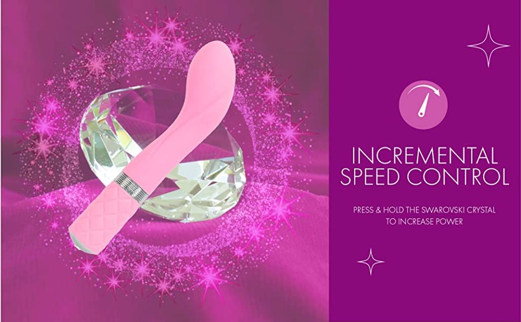 KRYSTAL SWAROVSKI - Luksusowy wibrator G-point PILLOW TALK to kwestia piękna i siły. Duży kryształ Swarovskiego jest umieszczony w pięknej siatce, co zapewnia optymalną elegancję dzięki oświetleniu LED. STYMULACJA PUNKTÓW G - Zakrzywiona głowa jest zmysłowo ukształtowana i doskonale celuje w punkt G, zapewniając optymalną satysfakcję. BEZPIECZNY MATERIAŁ DLA CIAŁA - Wykonany z najdelikatniejszego silikonu, który jest nie tylko w 100% bezpieczny dla ciała, ale także łatwo przesuwa się po skórze. ŁATWY W UŻYCIU - Faktura podkładki po obu stronach rękojeści pozwala na wygodne sterowanie wibratorem w każdych okolicznościach. SZYBKOŚĆ – po naciśnięciu i przytrzymaniu przycisku kryształu Swarovskiego wibrator ożywa w kilka sekund. Miły, ale potężny, szybko zamienia się w siłę napędową wibracji i wstrząsa wszystkim, co stanie mu na drodze, wibracjami, w których skręcają mu się palce.