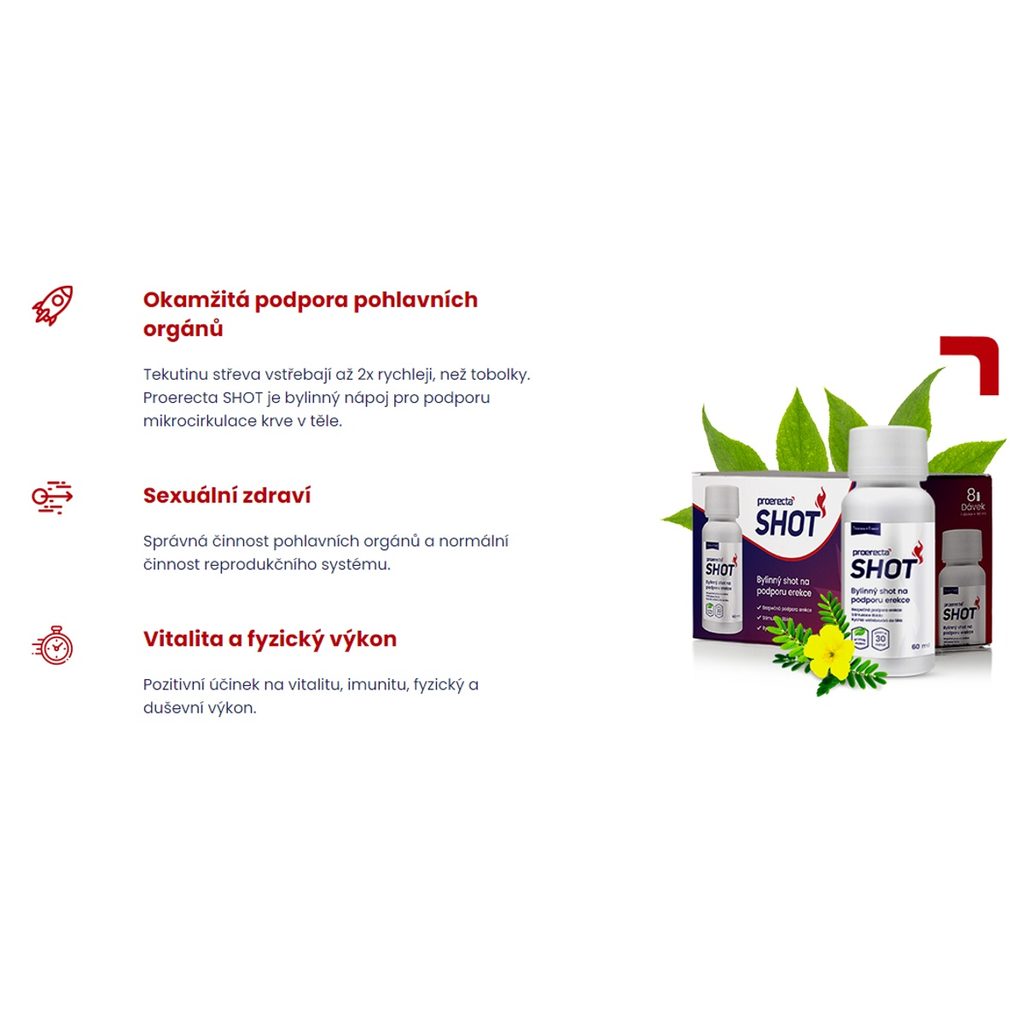 Napój zapewniający natychmiastowe, przyspieszone wsparcie mikrokrążenia krwi w prąciu, a co za tym idzie, erekcji. Forma płynna wchłania się szybciej niż tabletki. Mocna i niezawodna erekcja zaczyna się jeszcze szybciej.