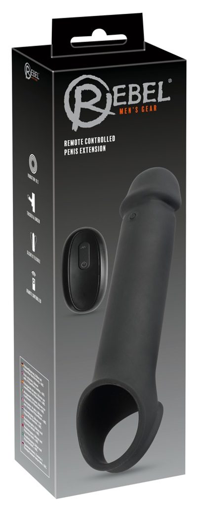 Ten elastyczny pokrowiec na penisa Zdalnie sterowane przedłużanie penisa firmy Rebel o miękkiej w dotyku teksturze pomaga penisowi nabrać kształtu, dzięki czemu może zapewnić satysfakcjonujące chwile przyjemności. Solidne żołędzie wydłużają również penisa o 8 cm. Ciasno przylegający rękaw podtrzymujący erekcję nakłada się na penisa, a pierścień kulkowy zapewnia jego bezpieczne i wygodne dopasowanie – zapobiega również zsuwaniu się. 10 różnych trybów wibracji można łatwo regulować za pomocą pilota - może być również używany przez partnera, ponieważ ma zasięg 12 metrów. Można go ładować za pomocą dołączonego kabla USB. Zawiera baterię (27A) do pilota.