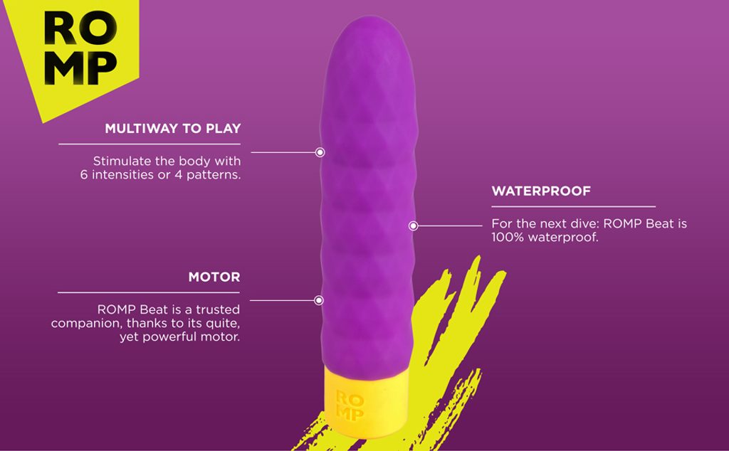 Elegancki i zabawny wibrator dla doskonałych uczuć pasji! Lekko elastyczna, o prostym ciele i pobudzającej konsystencji dla bardziej intensywnych doznań. Wysokiej jakości aksamitny miękki silikon najwyższej jakości, niesamowicie mocny silnik z 10 głębokimi trybami wibracji i pulsacji - to nasz nowy ROMP Beat.