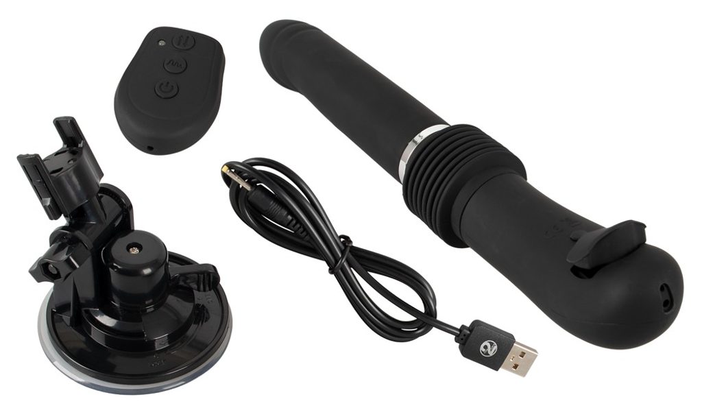 Wibrator udarowy ze zdejmowaną / regulowaną przyssawką Bezprzewodowy pilot z blokadą kluczyka 7 trybów wibracji, 3 prędkości uderzenia Aksamitna jedwabna powierzchnia Wszystkie akumulatory - w tym kabel do ładowania USB Pudełko z klapką i okienkiem (nie klejone) wraz z tekturową tacką Dodatkowa siła wibracyjna o długości 6 (!) Cm! You2Toys RC Fucking Machine 2.0 Throat Vibrator ze zdejmowaną podstawą ssącą z regulacją kąta, która mocno i bezpiecznie przylega do każdej gładkiej powierzchni, zapewniając przyjemność bez użycia rąk.