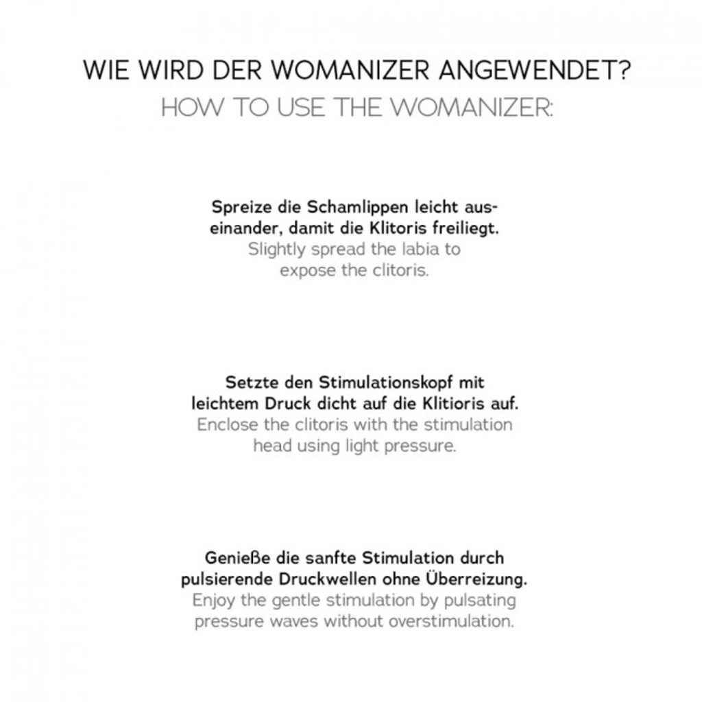 Stworzony dla Ciebie i Twojego ciała: Wszystkie produkty Womanizer zawierają unikalną innowację o nazwie Pleasure Air Technology. Dlaczego jest taki wyjątkowy? Twoja łechtaczka jest stymulowana bez bezpośredniego kontaktu. Delikatne wibracje powietrza jednocześnie zasysają i masują, zapewniając niespotykane doznania orgazmu.